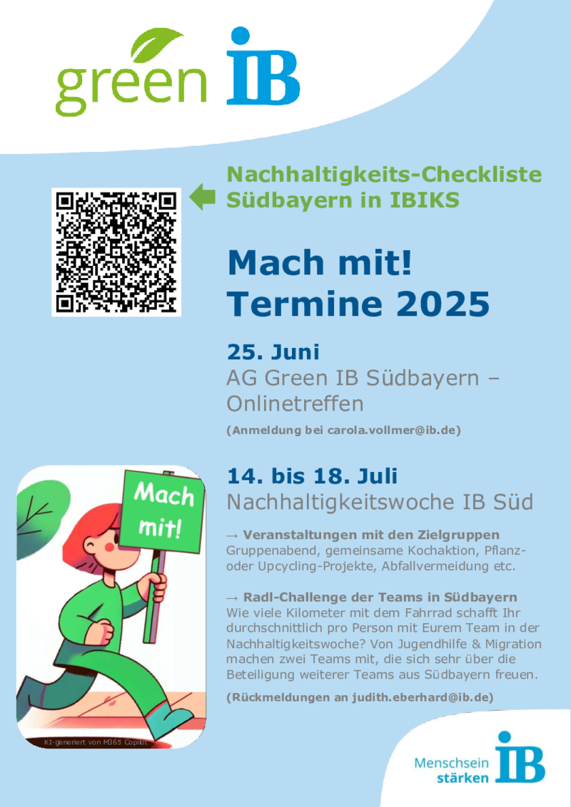 Dorothee Platz, Nachhaltigkeitsbeauftragte im IB Süd: dorothee.platz@ib.de