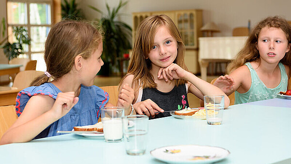 Essende Kinder in einer Schule des Internationalen Bundes (IB): Ab 2026 greift der Rechtsanspruch auf einen Ganztagsplatz in Grundschulen. Foto: Bildhorizonte/Sören Carl
